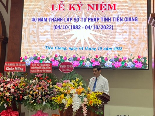 Phát biểu tại buổi lễ, đồng chí Nguyễn Thanh Bình, Cục trưởng Cục Công tác phía Nam, Bộ Tư pháp khẳng định, cùng với chặn đường phát triển của ngành Tư pháp Việt Nam, công tác tư pháp tỉnh Tiền Giang đã trưởng thành về nhiều mặt; đã và đang tiếp tục khẳng định được vị trí, vai trò là cơ quan tham mưu, là chỗ dựa tin cậy về mặt pháp lý cho Tỉnh ủy, Hội đồng nhân dân tỉnh, Ủy ban nhân dân tỉnh và là điểm sáng của cơ quan Tư pháp khu vực phía Nam.