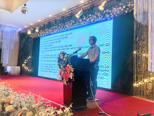 Tại Hội nghị, các đại biểu đã được nghe đồng chí Nguyễn Hoàng Việt – Phó Trưởng phòng Xử lý vi phạm hành chính, Cục Quản lý xử lý vi phạm hành chính và theo dõi thi hành pháp luật, Bộ Tư pháp triển khai những điểm mới của Luật sửa đổi, bổ sung một số điều của Luật Xử lý vi phạm hành chính; Nghị định số 118/2021/NĐ-CP ngày 23/12/2021 của Chính phủ quy định chi tiết một số điều và biện pháp thi hành Luật Xử lý vi phạm hành chính; Nghị định số 19/2020/NĐ-CP ngày 12/02/2020 của Chính phủ quy định về kiểm tra, xử lý kỷ luật trong thi hành pháp luật về xử lý vi phạm hành chính; Thông tư số 14/2021/TT-BTP ngày 30/12/2021 của Bộ trưởng Bộ Tư pháp quy định chi tiết thi hành một số điều của Nghị định số 19/2020/NĐ-CP ngày 12 tháng 02 năm 2020 của Chính phủ kiểm tra, xử lý kỷ luật trong thi hành pháp luật về xử lý vi phạm hành chính. Truyền đạt các kỹ năng xác định thẩm quyền lập biên bản vi phạm hành chính và soạn thảo biên bản vi phạm hành chính; xác định thẩm quyền xử phạt, quyết định cưỡng chế thi hành, tổ chức thi hành quyết định xử phạt vi phạm hành chính; việc áp dụng các biện pháp ngăn chặn và bảo đảm việc xử phạt vi phạm hành chính.