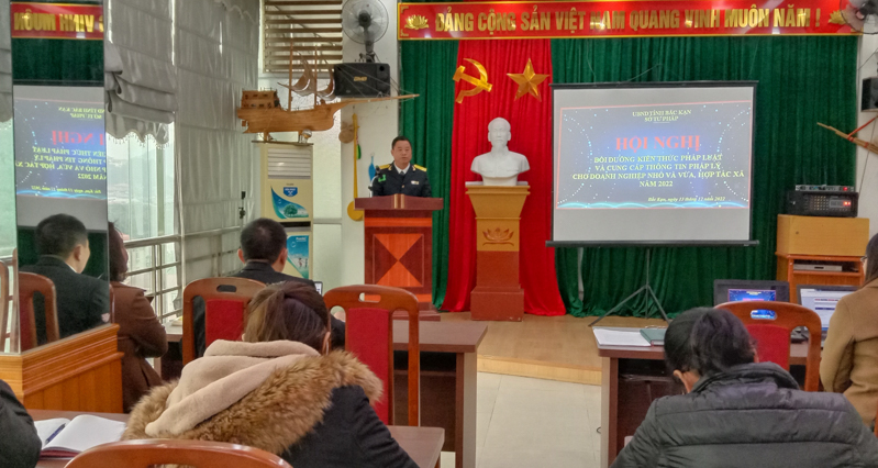 Ngày 13/12/2022, Sở Tư pháp Bắc Kạn phối hợp với Hiệp hội Doanh nghiệp tỉnh, Sở Tài nguyên và Môi trường, Sở Lao động - Thương binh và Xã hội, Cục thuế, Bảo hiểm xã hội tỉnh tổ chức Hội nghị cung cấp thông tin pháp lý, tư vấn pháp luật cho doanh nghiệp nhỏ và vừa, hợp tác xã về các lĩnh vực thuế, bảo hiểm cho người lao động, hợp đồng và đảm bảo thực hiện nghĩa vụ dân sự. Ông Trần Đăng Khoa - Phó Giám đốc Sở Tư pháp tỉnh dự và chỉ đạo Hội nghị.