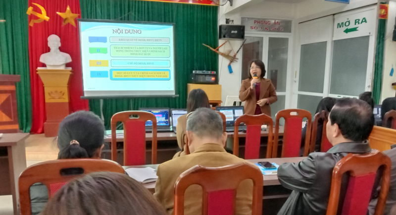 Tại Hội nghị, các đại biểu được nghe báo cáo viên của Cục thuế, Bảo hiểm xã hội tỉnh giới thiệu những văn bản pháp luật mới; Tiếp đó, báo cáo viên cùng với đại diện Sở Tài nguyên và Môi trường, Sở Lao động - Thương binh và Xã hội trực tiếp giải đáp, tháo gỡ những khó khăn, vướng mắc phát sinh trong thực tiễn mà các doanh nghiệp gặp phải trong quá trình hoạt động sản xuất kinh doanh.