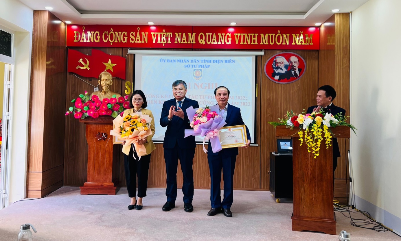 Cũng nhân dịp này, đồng chí Giàng Thị Hoa – Phó Chủ tịch HĐND tỉnh thừa ủy quyền của Thủ tướng Chính phủ trao tặng Bằng khen của Thủ tướng Chính phủ cho Đồng chí Lò Văn Tiến và tập thể Sở Tư pháp tỉnh Điện Biên đạt thành tích xuất sắc trong 10 năm hưởng ứng ngày pháp luật Việt Nam giai đoạn 2013-2022. Đồng chí Lò Văn Tiến - Phó Chủ tịch UBND tỉnh đã trao Bằng khen của Bộ trưởng Bộ Tư pháp cho 01 tập thể và 01 cá nhân thuộc Sở Tư pháp đạt thành tích xuất sắc trong công tác năm 2022. Cũng nhân dịp này, Giám đốc Sở Tư pháp đã quyết định khen thưởng đối với 09 tập thể và 58 cá nhân có thành tích xuất sắc trong phong trào thi đua chuyên đề năm 2022.