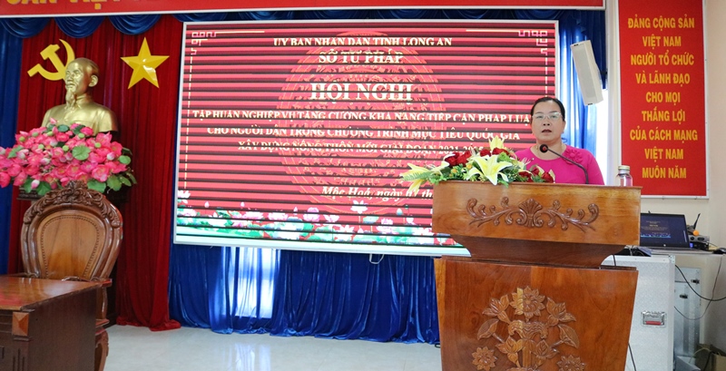 Ngày 07/4/2023, Sở Tư pháp tỉnh Long An phối hợp UBND huyện Mộc Hóa tổ chức Hội nghị tập huấn tăng cường khả năng tiếp cận pháp luật cho người dân trong Chương trình mục tiêu quốc gia nông thôn mới giai đoạn 2021 - 2025. Hội nghị do đồng chí Trần Văn Năm -  Phó Giám đốc Sở Tư pháp chủ trì với sự tham dự của hơn 120 đại biểu là Lãnh đạo và công chức phòng Tư pháp huyện Mộc Hóa, thành viên Hội đồng đánh giá tiếp cận pháp luật cấp huyện, báo cáo viên pháp luật cấp huyện; Lãnh đạo UBND, công chức chuyên môn, công an, quân  sự, đoàn thể các xã, thị trấn; tuyên truyền viên pháp  luật; hoà giải viên ở cơ sở trên địa bàn huyện Mộc Hóa