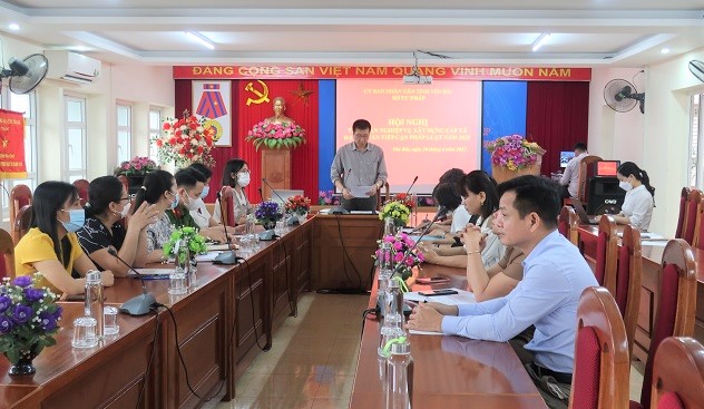 Tại hội nghị, đồng chí Nguyễn Thu Phương, Trưởng phòng Phổ biến, giáo dục pháp luật đã triển khai và hướng dẫn nghiệp vụ đánh giá, công nhận xã, phường, thị trấn đạt chuẩn tiếp cận pháp luật theo Quyết định số 25/2001/QĐ-TTg ngày 22/7/2021 của Thủ tướng Chính phủ Quy định xã, phường, thị trấn đạt chuẩn tiếp cận pháp luật và Thông tư số 09/2021/TT-BTP ngày 15/11/2021 của Bộ trưởng Bộ Tư pháp hướng dẫn thực hiện Quyết định số 25/2001/QĐ-TTg ngày 22/7/2021 của Thủ tướng Chính phủ Quy định xã, phường, thị trấn đạt chuẩn tiếp cận pháp luật.