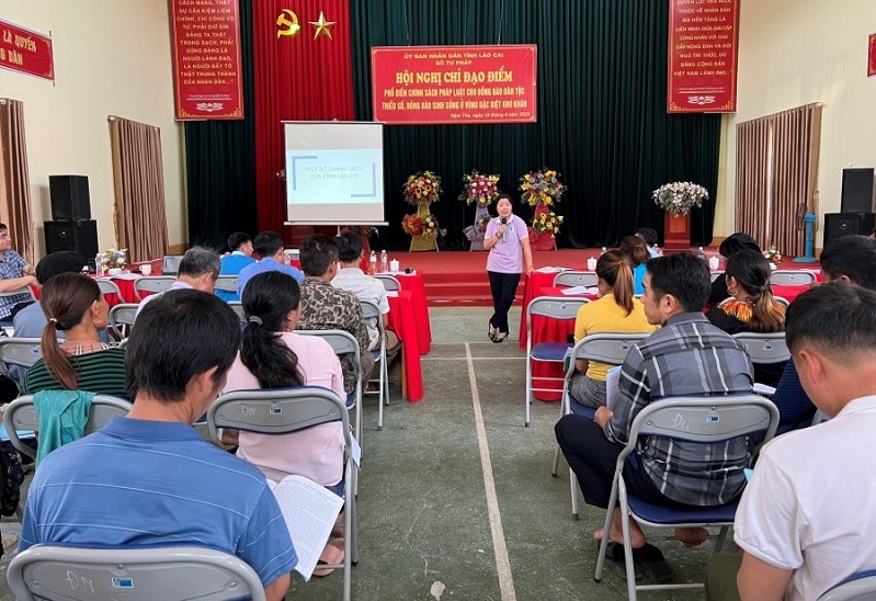 Triển khai Kế hoạch số 29/KH-STP ngày 07/3/2023 của Sở Tư pháp về việc triển khai Chương trình mục tiêu quốc gia phát triển kinh tế xã hội vùng đồng bào dân tộc thiểu số và miền núi năm 2023, ngày 24/4/2023 tại Hội trường Nhà văn hóa xã Nậm Tha, huyện Văn Bàn, Sở Tư pháp tỉnh Lào Cai tổ chức Hội nghị chỉ đạo điểm phổ biến chính sách pháp luật cho đồng bào dân tộc thiểu số, đồng bào sinh sống ở vùng đặc biệt khó khăn tại xã Nậm Tha, huyện Văn Bàn.