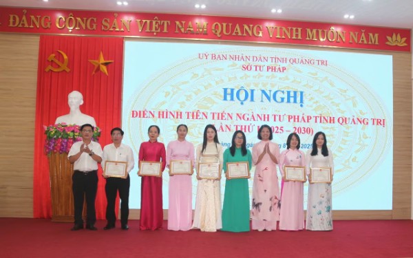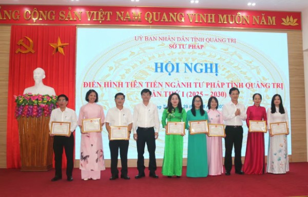 Chiều 29/8, Sở Tư pháp Quảng Trị tổ chức Hội nghị điển hình tiên tiến ngành Tư pháp lần thứ I (giai đoạn 2025-2030). Tham dự Hội nghị có Phó Chủ tịch UBND tỉnh Hoàng Xuân Tân; Ban Giám đốc Sở; đại diện lãnh đạo các sở, ban, ngành; các tập thể, cá nhân được tôn vinh; lãnh đạo Sở Tư pháp đã nghỉ hưu trong năm 2025, các đơn vị trực thuộc và toàn thể cán bộ, công chức của ngành.