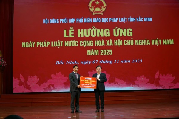 Hội đồng Phối hợp phổ biến giáo dục pháp luật tỉnh Bắc Ninh trao tặng 4.000 cuốn sách pháp luật cho 15 xã trên địa bàn tỉnh Bắc Ninh.