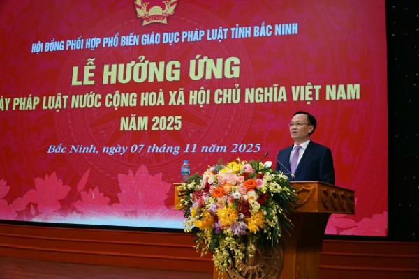 Chiều 7/11, tại Trung tâm Hội nghị tỉnh, Hội đồng Phối hợp Phổ biến, giáo dục pháp luật (PBGDPL) tỉnh Bắc Ninh tổ chức Lễ phát động hưởng ứng Ngày Pháp luật nước Cộng hòa xã hội chủ nghĩa Việt Nam năm 2025 theo hình thức trực tiếp kết hợp trực tuyến đến các điểm cầu trong toàn tỉnh.