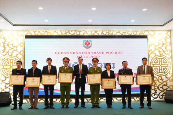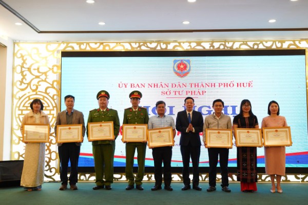 Tặng Bằng khen của Chủ tịch UBND thành phố Huế cho các cá nhân, tập thể có thành tích xuất sắc trong công tác thi hành Luật Trợ giúp pháp lý.