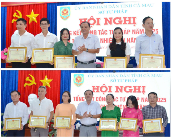 Dịp này, Chủ tịch UBND tỉnh Cà Mau tặng Bằng khen cho 1 tập thể và 5 cá nhân có thành tích trong công tác xây dựng pháp luật; Giám đốc Sở Tư pháp tặng Giấy khen cho 08 tập thể và 89 cá nhân có thành tích xuất sắc trong công tác tư pháp năm 2025.