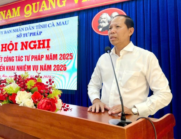 Hội nghị tổng kết 5 năm thực hiện phong trào thi đua yêu nước giai đoạn 2021-2025, đồng thời xác định phương hướng, nhiệm vụ trọng tâm của ngành Tư pháp Cà Mau trong năm 2026 và giai đoạn 2026-2030, trong bối cảnh tỉnh tiếp tục đẩy mạnh cải cách thể chế, sắp xếp tổ chức bộ máy và triển khai mô hình chính quyền địa phương hai cấp.