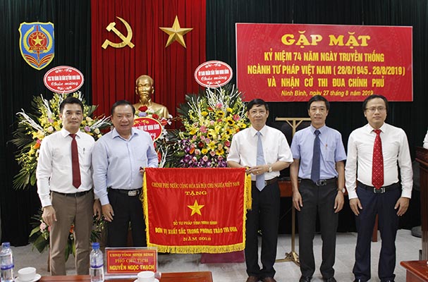 Chiều ngày 27/8/2019 Sở Tư pháp tỉnh Ninh Bình tổ chức gặp mặt 74 năm ngày truyền thống ngành Tư pháp Việt Nam (28/8/1945 - 28/8/2019) và nhận Cờ Thi đua của Chính phủ năm 2018. Tới dự có đồng chí Nguyễn Ngọc Thạch, Tỉnh ủy viên, Phó Chủ tịch UBND tỉnh; đồng chí Phạm Minh Thường, Bí thư Đảng ủy, Giám đốc Sở Tư pháp, Lãnh đạo Cục Thi hành án dân sự tỉnh; Lãnh đạo các Phòng Tư pháp các huyện, thành phố cùng toàn thể cán bộ, công chức, viên chức, người lao động thuộc Sở.