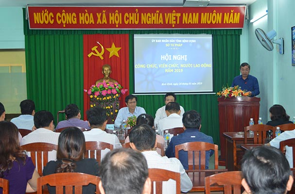Sáng ngày 18/01, Sở Tư pháp tổ chức hội nghị tổng kết công tác năm 2018 và triển khai công tác Tư pháp năm 2019. Tham dự hội nghị có đồng chí Nguyễn Thị Thu Vân, TUV - Giám đốc Sở Tư pháp; đại diện lãnh đạo các sở, ban ngành; lãnh đạo Ủy ban nhân dân, Phòng Tư pháp cấp huyện và toàn thể cán bộ, công chức, viên chức của Sở.