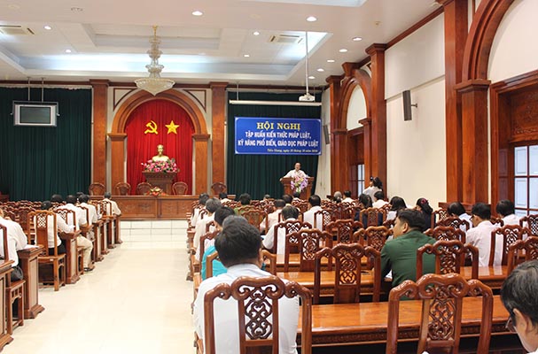 Vừa qua, Sở Tư pháp tổ chức hội nghị tập huấn triển khai các văn bản về xử lý vi phạm hành chính cho các sở, ban ngành; đại diện lãnh đạo Ủy ban nhân dân cấp huyện, cấp xã; công chức Tư pháp - Hộ tịch và công chức Địa chính - Môi trường trên địa bàn tỉnh. Tham dự hội nghị có đồng chí Lê Thanh Bình, Phó Cục trưởng Cục Quản lý xử lý vi phạm hành chính và Theo dõi thi hành pháp luật - Bộ Tư pháp; đồng chí Nguyễn Thị Thu Vân, Tỉnh ủy viên - Giám đốc Sở Tư pháp.