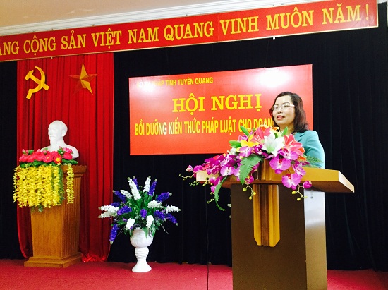 Thực hiện Chương trình hỗ trợ pháp lý liên ngành dành cho doanh nghiệp giai đoạn 2015 – 2020 và để nâng cao hiệu quả thông tin pháp luật, nâng cao chỉ số năng lực cạnh tranh cấp tỉnh (PCI), đặt biệt là chỉ số thành phần “Thiết chế pháp lý”, ngày 26/5/2016, Sở Tư pháp tỉnh Tuyên Quang đã tổ chức Hội nghị bồi dưỡng kiến thức pháp luật cho doanh nghiệp. Đồng chí Nguyễn Thị Thược, Tỉnh ủy viên, Giám đốc Sở dự và chỉ đạo Hội nghị.
