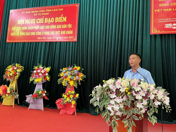 Triển khai Kế hoạch số 29/KH-STP ngày 07/3/2023 của Sở Tư pháp về việc triển khai Chương trình mục tiêu quốc gia phát triển kinh tế xã hội vùng đồng bào dân tộc thiểu số và miền núi năm 2023, ngày 24/4/2023 tại Hội trường Nhà văn hóa xã Nậm Tha, huyện Văn Bàn, Sở Tư pháp tỉnh Lào Cai tổ chức Hội nghị chỉ đạo điểm phổ biến chính sách pháp luật cho đồng bào dân tộc thiểu số, đồng bào sinh sống ở vùng đặc biệt khó khăn tại xã Nậm Tha, huyện Văn Bàn.