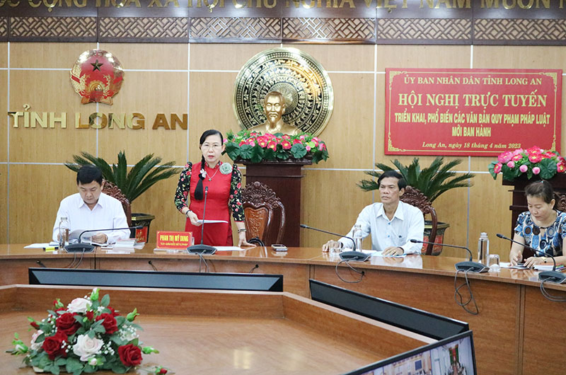 Nhằm triển khai, phổ biến, kịp thời các văn bản pháp luật mới để quán triệt đầy đủ những tư tưởng, quan điểm chính sách của Đảng và pháp luật của Nhà nước đối với các lĩnh vực mà văn bản pháp luật mới điều chỉnh cho đội ngũ làm công tác phổ biến, giáo dục pháp luật trên địa bàn tỉnh Long An. Được sự ủy quyền của Chủ tịch UBND tỉnh, Ngày 18/4/2023, Sở Tư pháp - Cơ quan Thường trực Hội đồng phối hợp phổ biến, giáo dục pháp luật tỉnh tổ chức Hội nghị trực tuyến triển khai các văn bản pháp luật theo Kế hoạch số 331/KH-UBND ngày 10/02/2023 của UBND tỉnh.