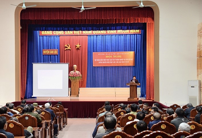 Thực hiện Kế hoạch số 376/KH-UBND ngày 07/10/2022 của UBND tỉnh về triển khai Đề án “Tăng cường năng lực tiếp cận pháp luật của người dân” trên địa bàn tỉnh, ngày 28/3/2023, Sở Tư pháp chủ trì phối hợp với Hội Luật gia tỉnh và UBND huyện Can Lộc tổ chức Hội nghị tập huấn cho hơn 200 Tuyên truyền viên pháp luật, Hòa giải viên ở cơ sở trên địa bàn huyện Can Lộc.