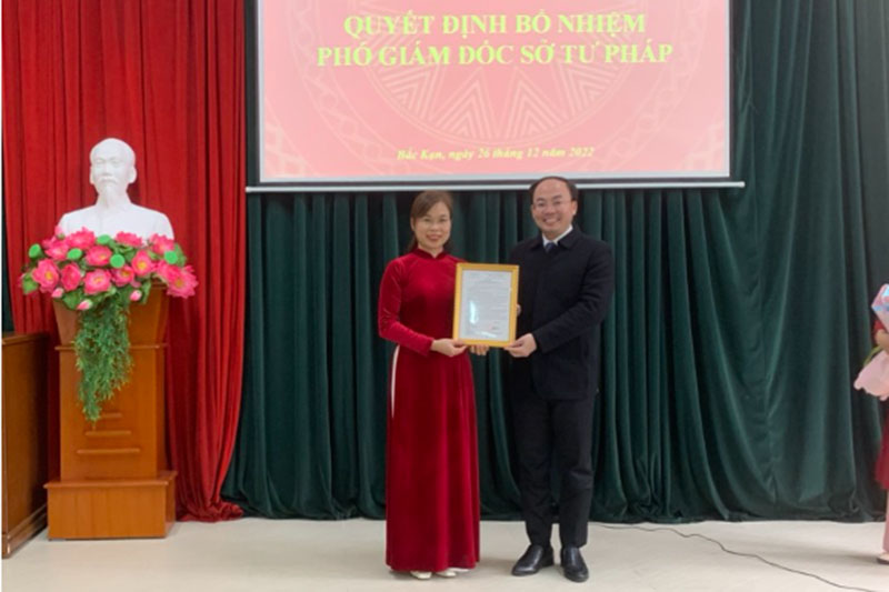 Ngày 26/12/2022, Sở Tư pháp tỉnh Bắc Kạn tổ chức Lễ công bố Quyết định bổ nhiệm chức vụ Phó Giám đốc Sở Tư pháp. Dự Lễ công bố và chỉ đạo buổi lễ có đồng chí Nguyễn Đăng Bình - Phó Bí thư Tỉnh ủy, Chủ tịch UBND tỉnh.