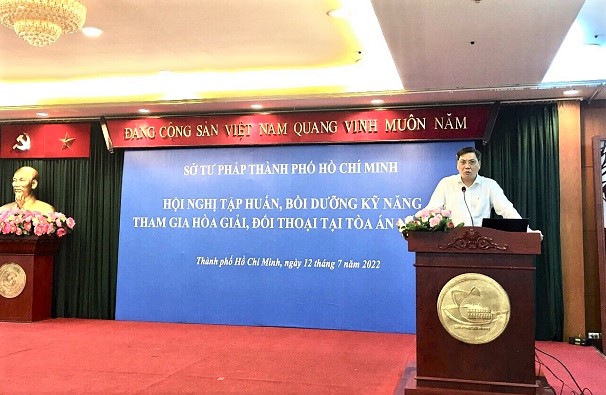 Ngày 12/7, Sở Tư pháp TP. Hồ Chí Minh đã phối hợp với Tòa án nhân dân Thành phố tổ chức Hội nghị tập huấn, bồi dưỡng kỹ năng tham gia hòa giải, đối thoại tại Tòa án trên địa bàn TP. Hồ Chí Minh năm 2022.