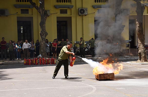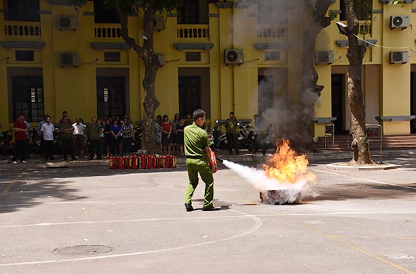 Báo cáo viên Đỗ Hòa, cảnh sát PCCC thành phố Hà Nội đã trao đổi các học viên về tình hình cháy xảy ra trên địa bàn thành phố Hà Nội trong những năm gần đây; văn bản pháp luật về PCCC hiện hành; kiến thức cơ bản về PCCC; các phương pháp chữa cháy cơ bản… Đặc biệt, thông tin về đặc điểm nguy hiểm cháy của tòa nhà; các hệ thống, phương tiện PCCC được trang bị tại tòa nhà là vấn đề rất thiết thực và được nhiều học viên quan tâm.