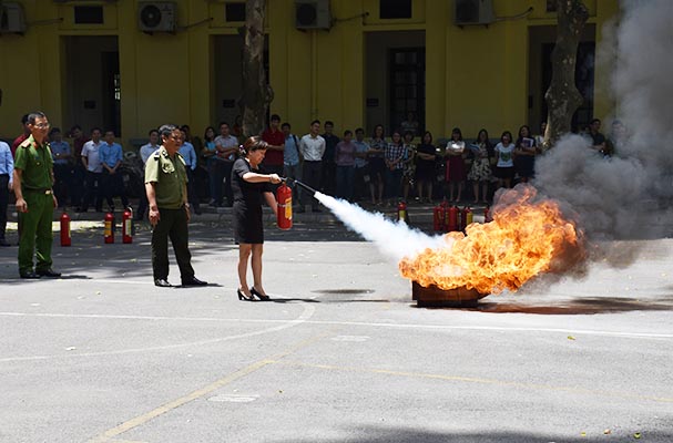 Các học viên đã được giới thiệu và thực hành một số kỹ năng cơ bản như sử dụng bình bọt, sử dụng bình khí để chữa cháy, từ đó có hiểu biết và tự tin hơn khi xử lý các tình huống cháy nổ xảy ra trên thực tế.