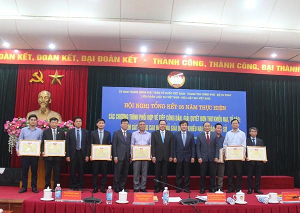 Đây là đề xuất được đưa ra tại Hội nghị tổng kết 5 năm thực hiện các Chương trình phối hợp về tiếp công dân, giải quyết đơn thư khiếu nại, tố cáo (KNTC), giám sát, nâng cao hiệu quả giải quyết KNTC ở cơ sở diễn ra ngày 11/10. Hội nghị do Chủ tịch Ủy ban Trung ương Mặt trận Tổ quốc Việt Nam (MTTQVN) Trần Thanh Mẫn, Tổng Thanh tra Chính phủ Lê Minh Khái, Bộ trưởng Bộ Tư pháp Lê Thành Long, Chủ tịch Hội Luật gia Việt Nam Nguyễn Văn Quyền, Chủ tịch Liên đoàn Luật sư Việt Nam Đỗ Ngọc Thịnh đồng chủ trì.