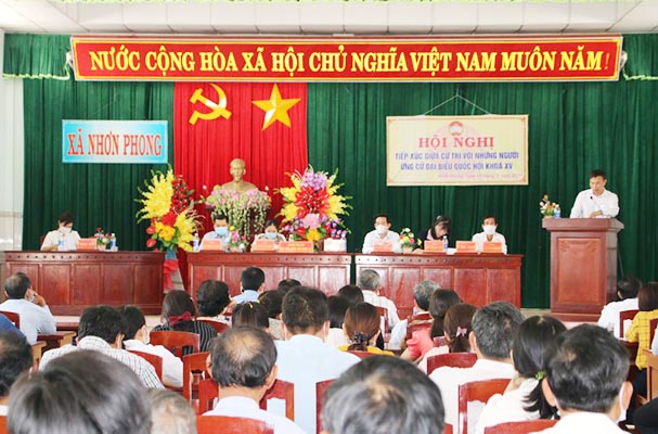 Sáng 5/5, tại xã UBND xã Nhơn Phong (thị xã An Nhơn, tỉnh Bình Định), Ủy ban MTTQ Việt Nam tỉnh Bình Định đã tổ chức Hội nghị tiếp xúc cử tri với những người ứng cử đại biểu Quốc hội khóa XV thuộc cụm số 1, đơn vị bầu cử số 2 để những người ứng cử thực hiện quyền vận động bầu cử. Hội nghị được thực hiện trong điều kiện đảm bảo các điều kiện phòng, chống dịch Covid-19.