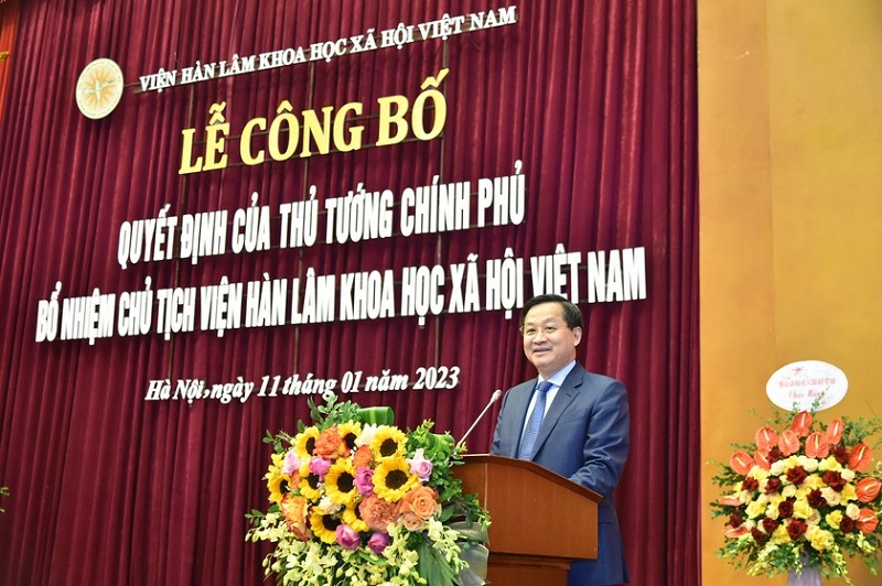 Tại buổi lễ, sau khi công bố Quyết định số 08/QĐ-TTg ngày 7/1/2023 của Thủ tướng Chính phủ về việc điều động, bổ nhiệm ông Phan Chí Hiếu, Thứ trưởng Bộ Tư pháp giữ chức Chủ tịch Viện Hàn lâm Khoa học xã hội Việt Nam, ông Lê Minh Khái, Bí thư Trung ương Đảng, Phó Thủ tướng Chính phủ đã trao quyết định bổ nhiệm cho ông Phan Chí Hiếu - tân Chủ tịch Viện Hàn lâm Khoa học xã hội Việt Nam.