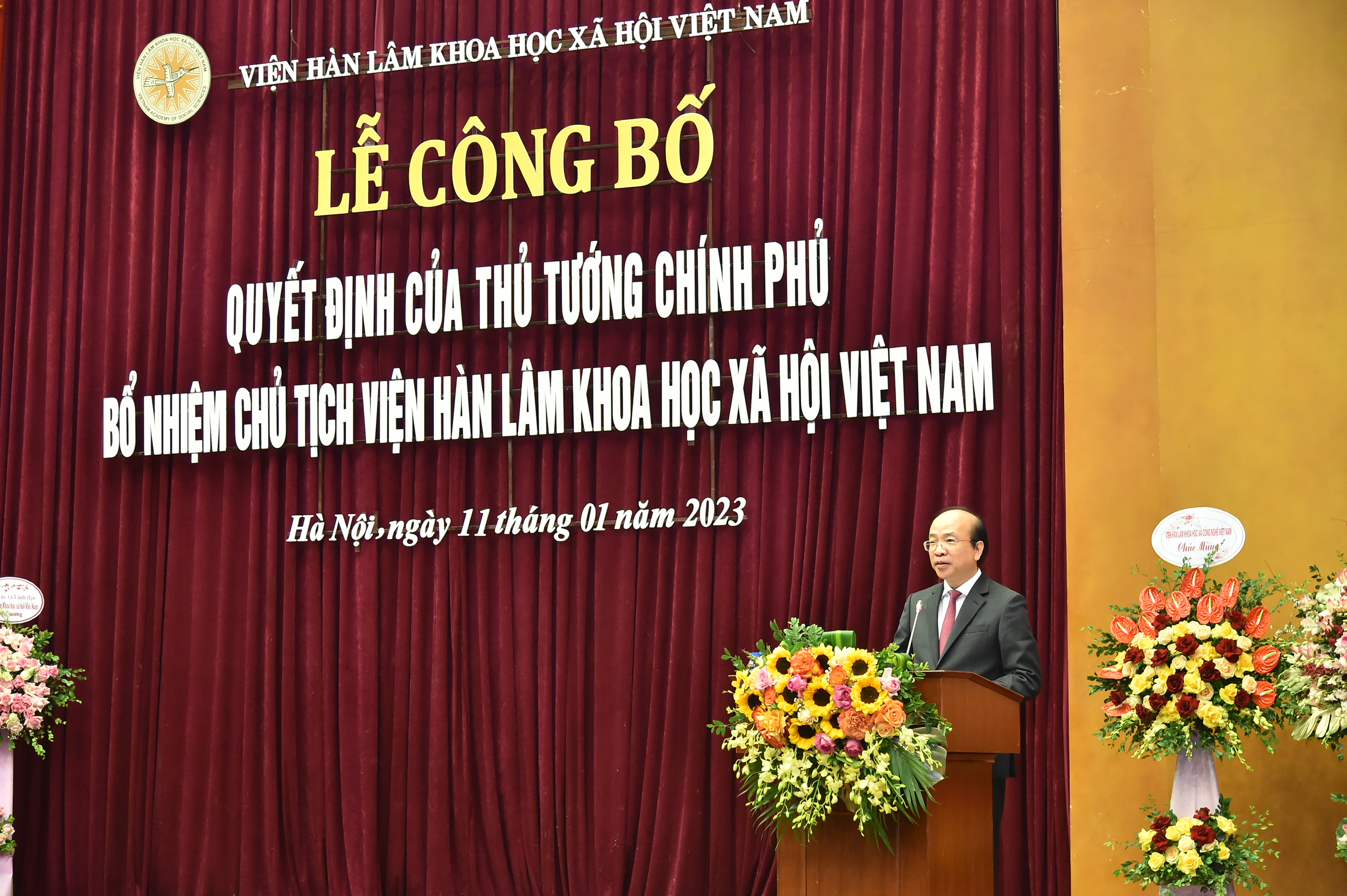 Hôm nay (11/1), Viện Hàn lâm Khoa học xã hội Việt Nam đã tổ chức trọng thể Lễ công bố quyết định của Thủ tướng Chính phủ bổ nhiệm Chủ tịch Viện Hàn lâm Khoa học xã hội Việt Nam đối với Thứ trưởng Bộ Tư pháp Phan Chí Hiếu.