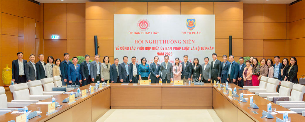 Ngày 14.3, tại Nhà Quốc hội, Ủy ban Pháp luật và Bộ Tư pháp đã tổ chức Hội nghị thường niên về công tác phối hợp của hai cơ quan trong năm 2023. Đồng chí Hoàng Thanh Tùng, Ủy viên Trung ương Đảng, Chủ nhiệm Ủy ban Pháp luật và đồng chí Lê Thành Long, Ủy viên Trung ương Đảng, Bộ trưởng Bộ Tư pháp đồng chủ trì hội nghị.