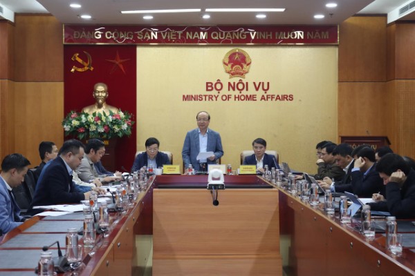 Thứ trưởng Bộ Tư pháp Phan Chí Hiếu chủ trì buổi làm việc với Bộ Nội vụ để trao đổi, cho ý kiến đối với cơ chế, chính sách thuộc lĩnh vực quản lý nhà nước của Bộ Nội vụ nhằm sửa đổi Luật Thủ đô. (Ảnh: PV)
