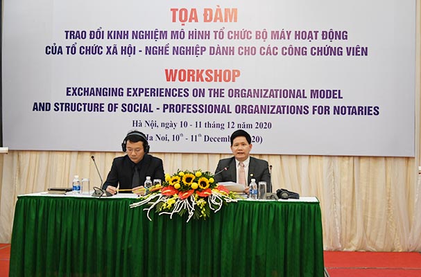 Trong khuôn khổ nội dung chương trình họp Hội đồng công chứng viên toàn quốc diễn ra trong ba ngày 09, 10, 11/12, chiều nay 10/12, Hiệp hội công chứng viên Việt Nam (gọi tắt là Hiệp hội) đã tổ chức Tọa đàm trực tuyến giữa Hiệp hội Công chứng viên Việt Nam và Hiệp hội các Phòng công chứng Cộng hòa liên bang Đức. Đồng chí Nguyễn Hữu Huyên, Vụ trưởng Vụ Hợp tác quốc tế, đồng chí Tuấn Đạo Thanh, Chủ tịch Hiệp hội chủ trì Tọa đàm.
