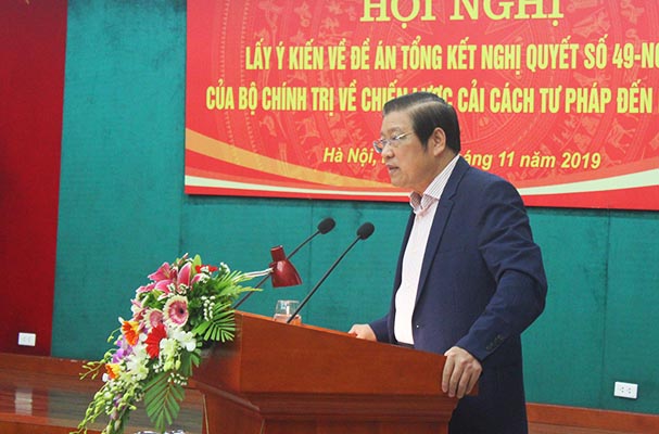 Ngày 22/11, tại Hà Nội, Ban Chỉ đạo tổng kết Nghị quyết số 49-NQ/TW đã tổ chức Hội nghị lấy ý kiến vào dự thảo Báo cáo Tổng kết thực hiện nghị quyết số 49-NQ/TW ngày 2/6/2005 của Bộ Chính trị về chiến lược cải cách tư pháp đến năm 2020 với sự chủ trì của đồng chí Phan Đình Trạc, Bí thư Trung ương Đảng, Trưởng ban Nội chính Trung ương, Trưởng ban Chỉ đạo Đề án tổng kết.