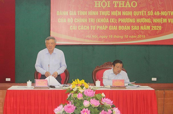Ngày 16/10, Ban Chỉ đạo Đề án tổng kết Nghị quyết 49-NQ/TW của Bộ Chính trị (khóa IX) về chiến lược cải cách tư pháp đến năm 2020 (Nghị quyết số 49) đã tổ chức Hội thảo đánh giá tình hình thực hiện Nghị quyết, phương hướng, nhiệm vụ cải cách tư pháp giai đoạn sau năm 2020.