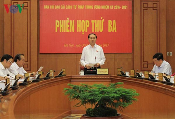 Ngày 30/5, tại Hà Nội, Ban Chỉ đạo Cải cách tư pháp Trung ương (Ban Chỉ đạo) tổ chức Phiên họp thứ ba nhằm thảo luận, cho ý kiến về Dự thảo Báo cáo tổng kết mô hình tổ chức, hoạt động của Ban Chỉ đạo từ khi thành lập đến nay; đề xuất mô hình tổ chức, hoạt động của Ban Chỉ đạo thời gian tới.