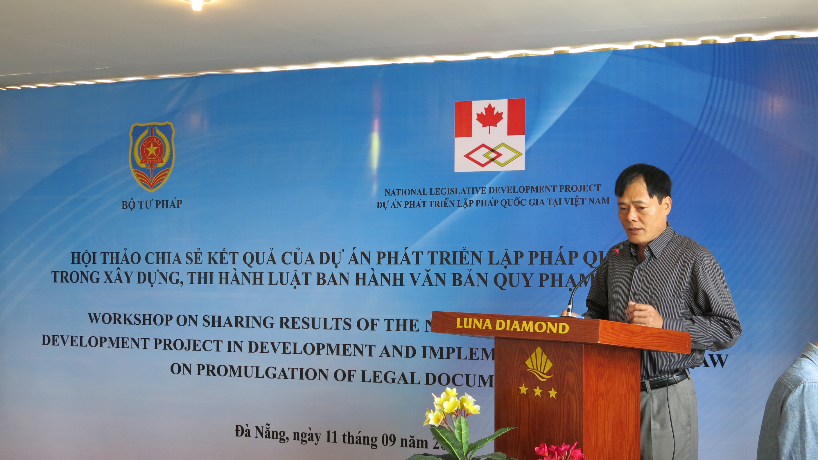 Ngày 11 tháng 9 năm 2015, Ban Quản lý dự án Chuyên trách (Ban QLDACT) Bộ Tư pháp đã phối hợp với Văn phòng Dự án Phát triển lập pháp quốc gia (Dự án NLD) và một số cơ quan hữu quan tổ chức hội thảo với nội dung chia sẻ kết quả dự án NLD trong xây dựng, thi hành Luật Ban hành văn bản quy phạm pháp luật (sau đây gội tắt là Luật BHVBQPPL).
