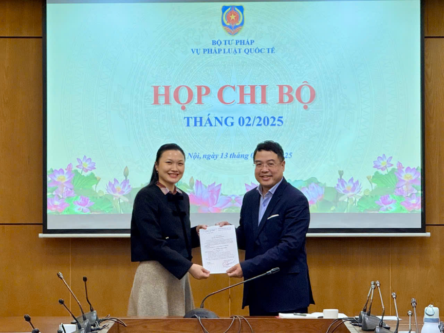 Bên cạnh việc quán triệt tới toàn thể đảng viên của Chi bộ các Nghị quyết của Đảng, Chi bộ Vụ Pháp luật quốc tế cũng tiến hành công bố kết quả đánh giá, xếp loại chất lượng tổ chức đảng trực thuộc năm 2024.
